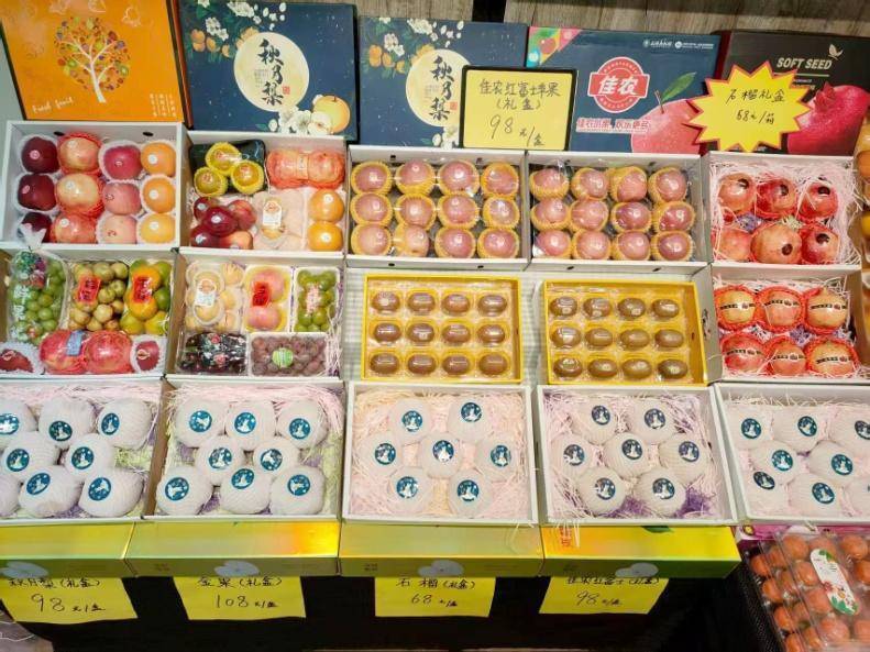 “最近临近中秋,水果礼盒销量也是高涨。”店主表示,不少顾客走亲访友都顺便带个水果礼盒当送礼搭子,又好看又实惠。