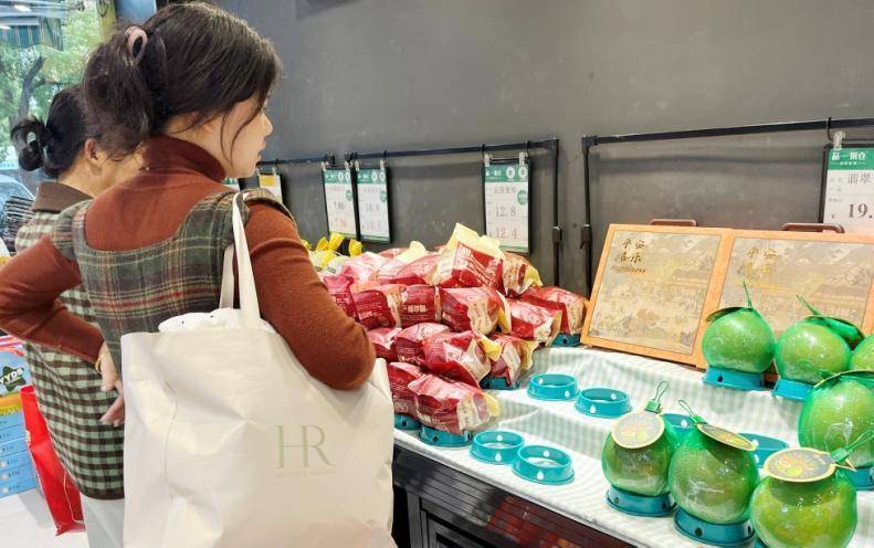 “云南蜜橘9.5元一斤,刚上市的,价格有点偏贵,但主打一个尝鲜,酸甜口感,解腻又开胃。”店主指着货架上的蜜橘说,店里还有一些活动款的水果很受欢迎,“冬枣15元一盒,沪太葡萄9.9元2斤,10元4个的葡萄柚,火晶柿子10元2盒,这些活动款卖得都很好。”