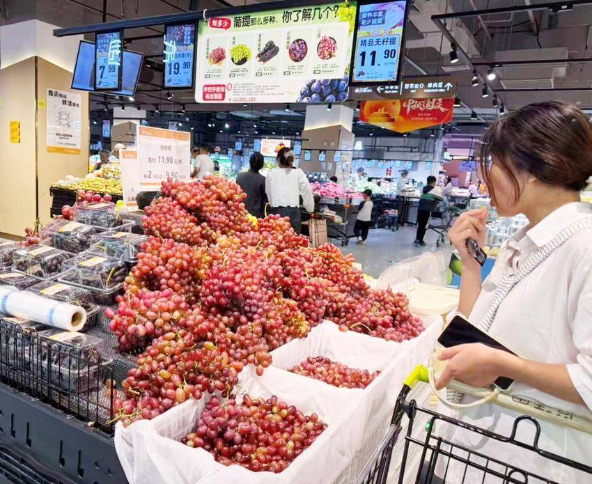 9月22日晚,万达广场一超市上新了众多秋季时令水果,葡萄、石榴、橘子、冬枣等摆满货架,不少市民推着购物车驻足挑选,把“秋天的味道”带回家。