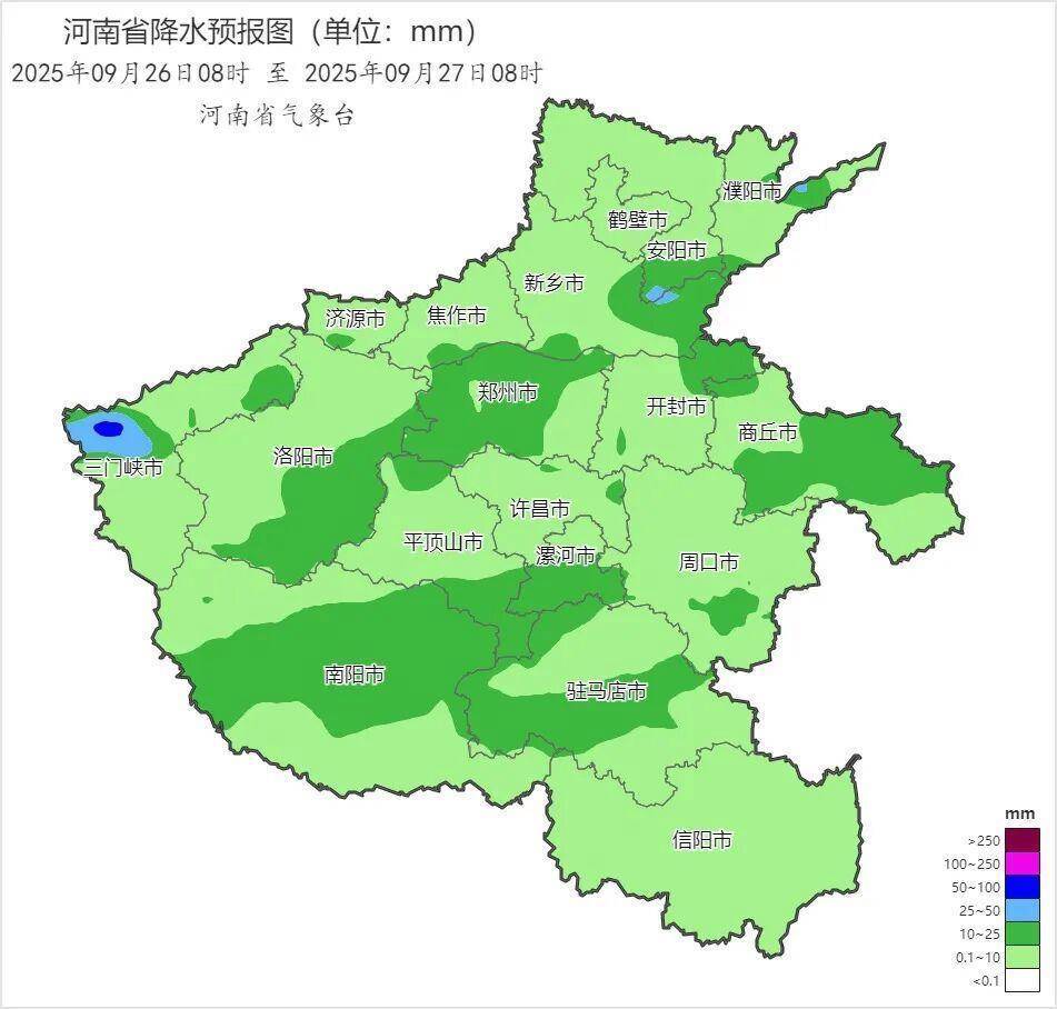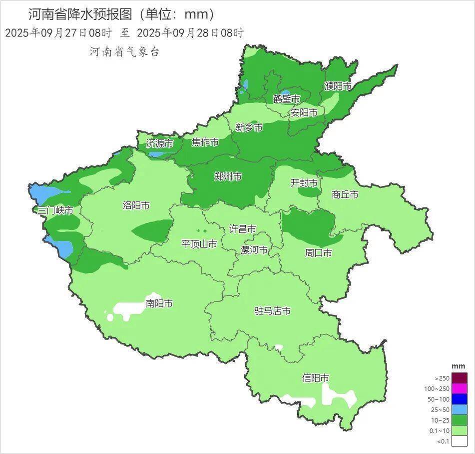 (点击图片可放大)未来三天天气预报来源:河南省气象台2025年9月25日12时预报今天下午,南阳东部、信阳、驻马店、周口东南部阴天,有小雨或零星小雨,其中信阳局部有中雨;其他县(市、区)晴天到多云。今天夜里,全省多云到阴天,沿黄及其以南大部有小雨或零星小雨,其中东部、南部部分县(市、区)有中雨,局部大雨。明天,全省阴天,有小雨或零星小雨,东部、南部部分县(市、区)有中雨,局部大雨。27日,全省阴天,大部有小雨,西部、北中部部分县(市、区)有中雨,局部大雨。28日,沿黄及其以南阴天有小雨,中西部、南部部分县(市、区)有中雨,局部大雨;其他县(市、区)多云到晴天。郑州25日夜里至28日郑州市多阴雨天气9 月以来,郑州市秋雨特征明显,降水过程多,累计雨量大,大部分地块偏湿。预计25日夜里至28日郑州市仍多阴雨天气。过程累计降水量20~40毫米,局部40~50毫米。此外,国庆前期郑州市仍有阴雨天气。当前郑州市秋作物已进入成熟收获期,近期仍多降水过程,秋作物已成熟地块做好避雨收获,趁晴天及时收获晾晒、通风存储,确保颗粒归仓、丰产丰收。地质条件脆弱地区需加强灾害隐患点巡查排险,防范持续降水可能引发的局地地质灾害、农田渍涝、城市积涝等气象风险。同时,需关注降水对国庆交通出行、景区旅游等的影响。全市各级气象部门将严密监视天气变化,加强与相关部门联合会商,做好递进式开展预报预警服务。请密切关注天气变化趋势及属地气象台站发布的最新天气预报、气象灾害预警信号和气象风险提示,做好防范应对。