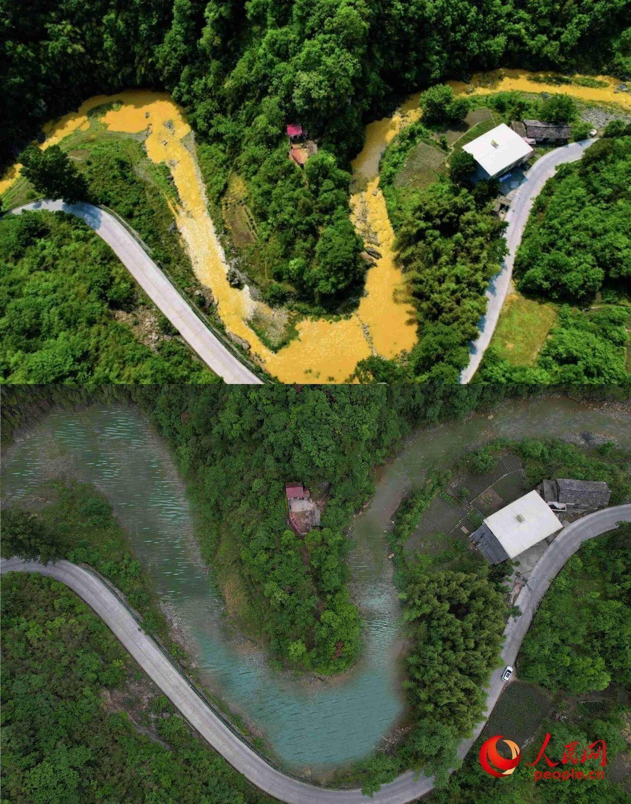 厚子河仇家湾河段治理前后。受访者供图“磺水”流入河中,高浓度的酸性物质和金属元素导致河水变色,鱼虾绝迹,河边的庄稼无法成活,村民取水、用水也成了大问题。